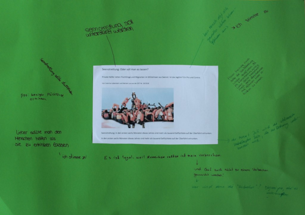 Strahlende Gesichter, weil der letzte Besuch für dieses Schuljahr so schön war! Heute hatten wir im Rahmen der Projekttage an der Max-Weber-Schule besonders viel Zeit und konnten uns intensiv mit Sprache in der Asyldebatte beschäftigen, bevor es in die Austauschrunde ging. Außerdem können wir Zarafshan in unserem Team begrüßen.
