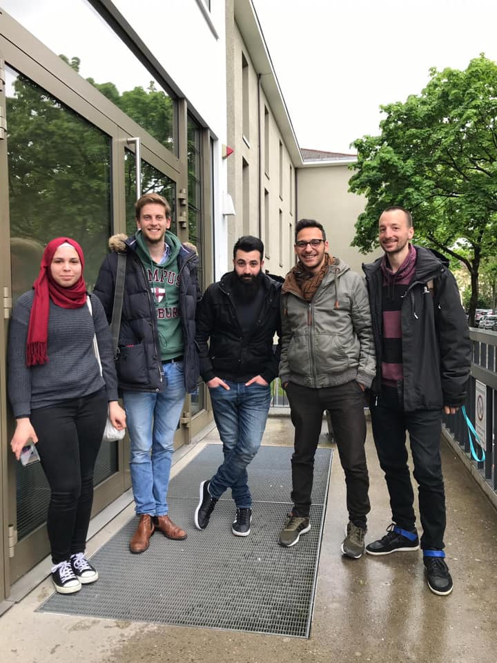 Auch im Mai waren Nagham, Eyad, Mohammad, Lukas & Constantin bei einem Schulbesuch. Zusammen haben sie eine Ausbildungsklasse der Merian-Schule besucht. Die Schüler*innnen der Klasse für Erzieher*innen durften dabei die ganz eigenen Geschichten und Erlebnisse der drei kennenlernen.