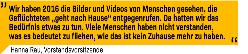 Mit der simplen Nachricht „die sind doch auch nur Menschen“ und der Idee, Geflüchtete sollen als Zeitzeug*innen selbst von ihren eigenen Erfahrungen berichten, haben wir mit viel Motivation und wenig Mitteln in unserer WG-Küche gestartet.